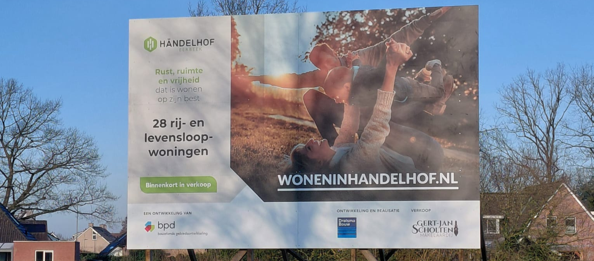 Heb jij het bouwbord van Händelhof al gespot? Deze is namelijk vanaf nu te zien op de projectlocatie. In het noordelijke deel van Eerbeek komen in totaal 28 koopwoningen, een mooie mix van levensloopbestendige woningen en ruime gezinswoningen, en 28 sociale huurappartementen.